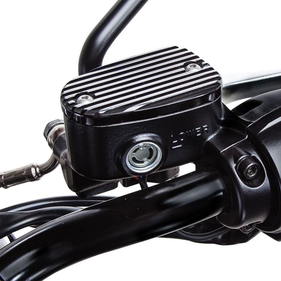 The Stylish Master Cylinder Cover is sleek and will give any bike’s front end a clean touch. Made from high quality 6061 aluminium and anodised black/Contrast cut polished fins, it’s a great way to polish up the details of your bike’s front end. It’s fast and easy to install too, and fits snugly onto the stock master cylinder with just two screws. It also won’t warp after extended use in the sun, the way a plastic master cylinder cover will.