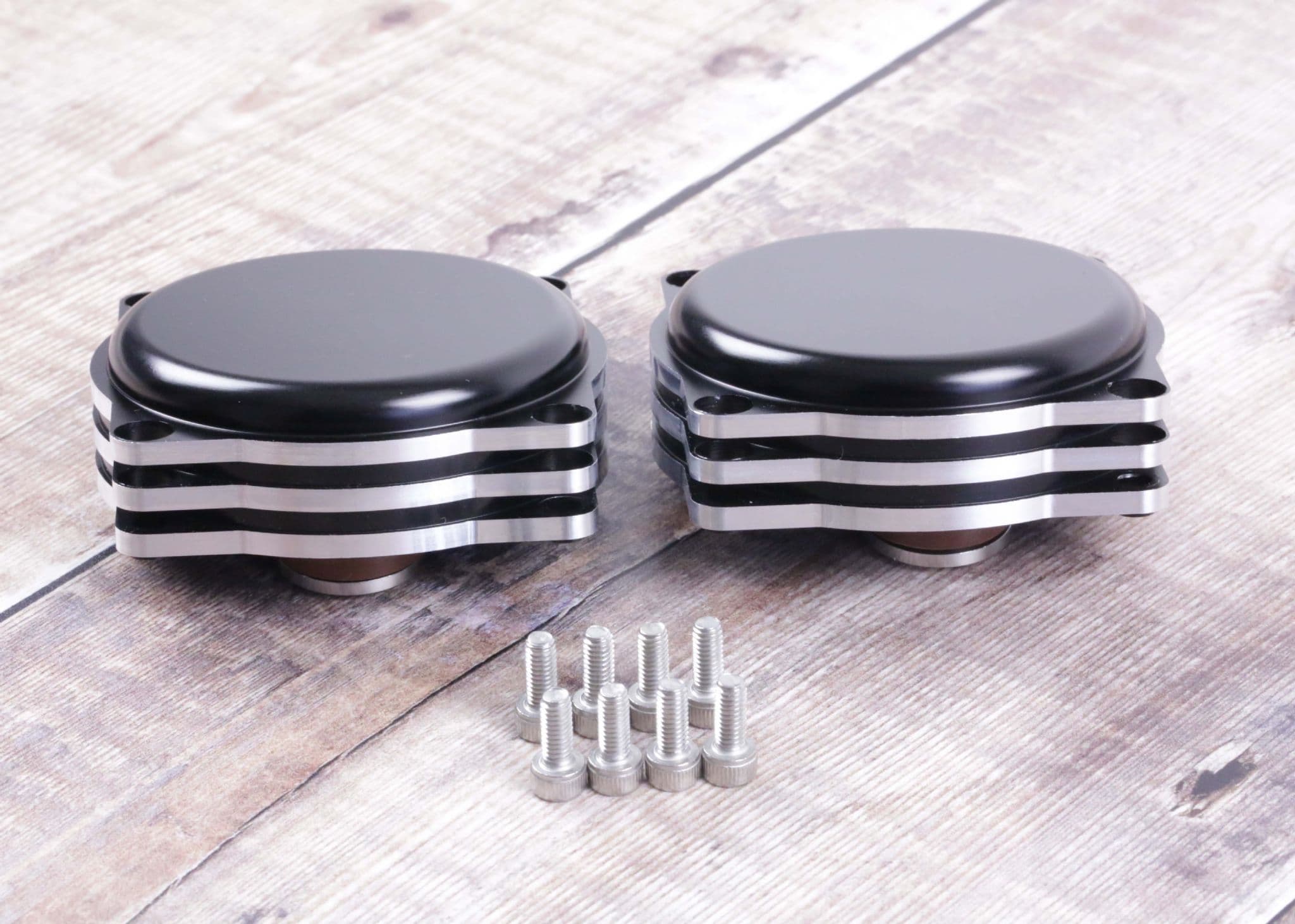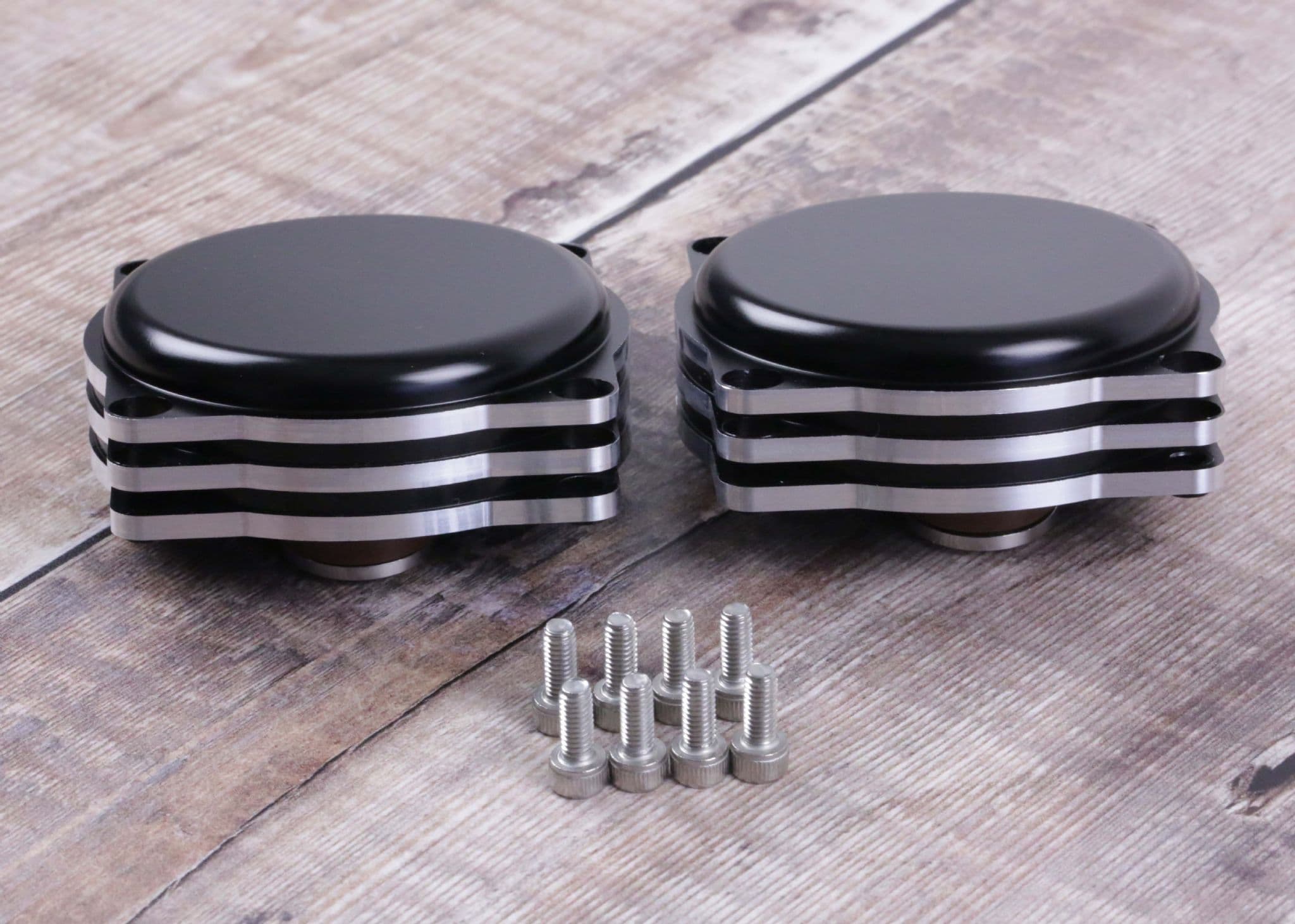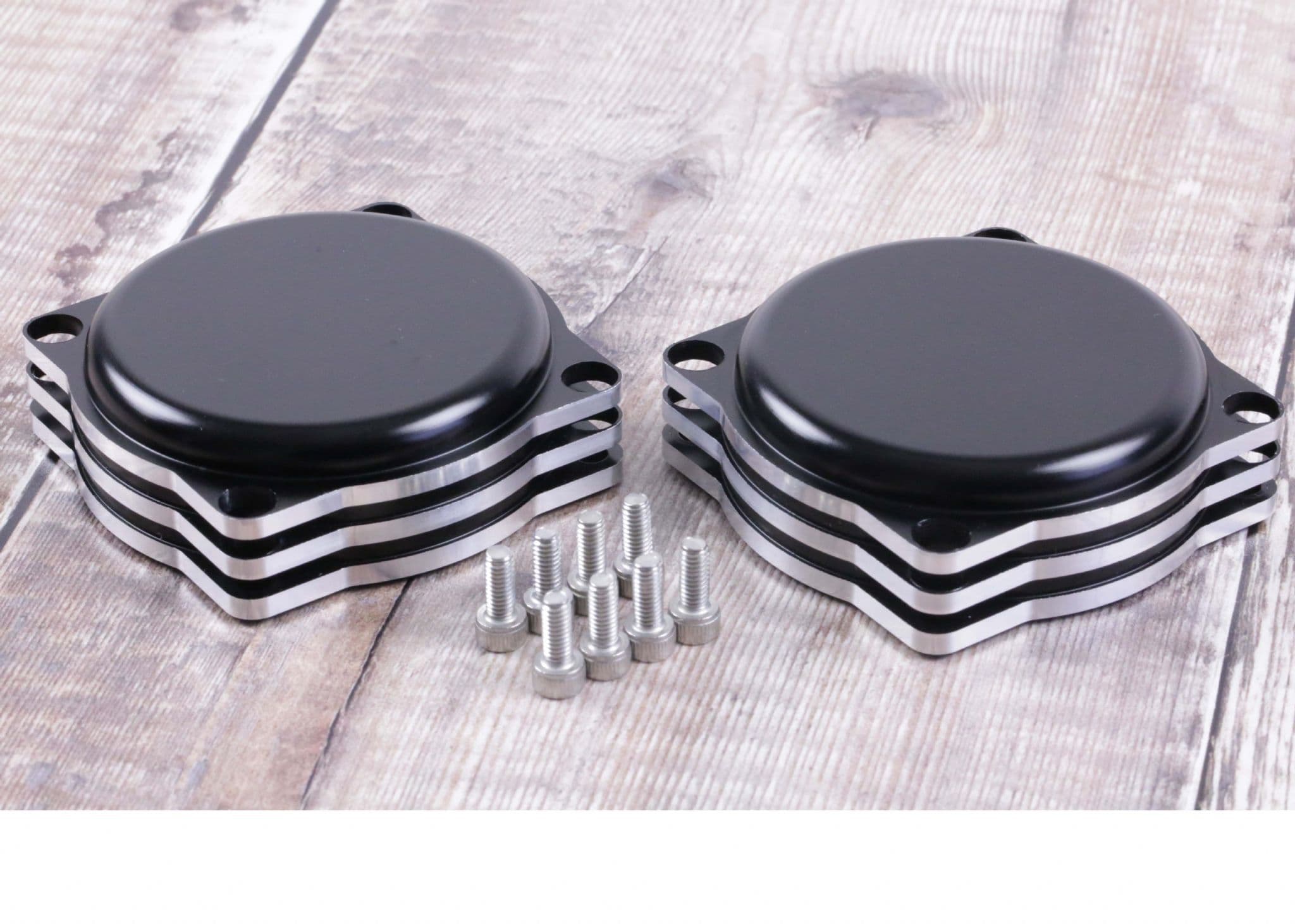 The caps simply replace the stock caps on the carbs. Designed to look like the valve adjustment plugs on early Triumphs. Supplied with new stainless steel screws. Features silver contrast cut ribs.
